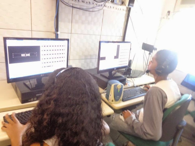 Samarah aprendendo a editar... com a ajuda da professora e de seus colegas...